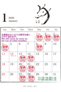 01/30/2020 小樽・蕎麦屋・籔半の営業案内