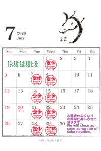 Reservations cannot be made during Golden Week (April 30th to May 5th). Please visit the store in person to register. You can select a date, however. Please check the calendar for our regular closing days. Reservations are not accepted for lunch on Saturdays and Sundays.Please note that reservations are accepted up to three months in advance. (For example, reservations for July 15th open on April 15th.)