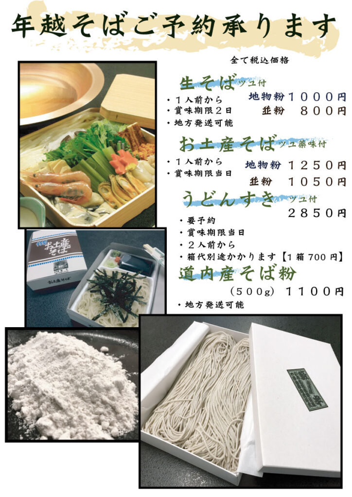 小樽・蕎麦屋・籔半の「お持ち帰りメニュー」